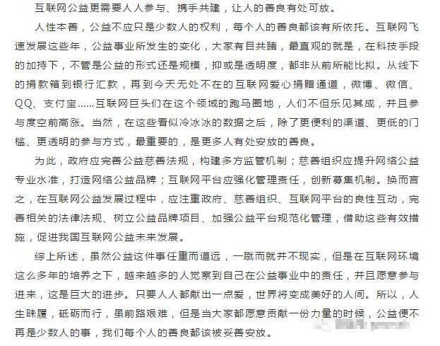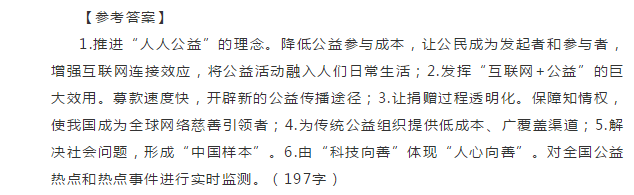第一题:根据“给定资料1-3”,请概括互联网公益和传统公益相比有哪些优势?(15分)