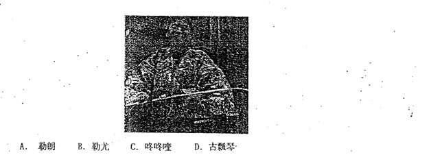 14.这是黔东南州丹寨县境内的一个苗族青年正在演奏当地苗族人民特有的一种古老的民间传统乐器。这种乐器叫: