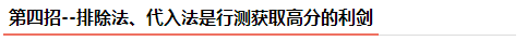 行测全部为客观题,且四个选项常常暗藏玄机,这就给我们寻求捷径、节省做题时间提供了便利,分析选项中的玄机往往能在短时间内得到答案。很多题目我们通过观察选项,配合使用排除法或者代入法,结合题目中的相关信息就可以直接得出答案。