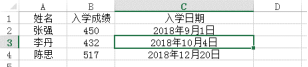 26. 下表为 Excel 学生信息表,在设置了日期格式的C3单元格误输入了数字"6789"并确认后,C3单元格是示的内容是( )。