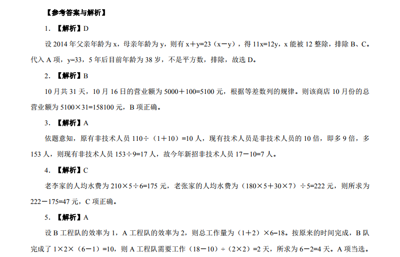 一、数量关系。在这部分试题中,每道题呈现一段表述数字关系的文字,要求你迅速、准确地计算出答案。