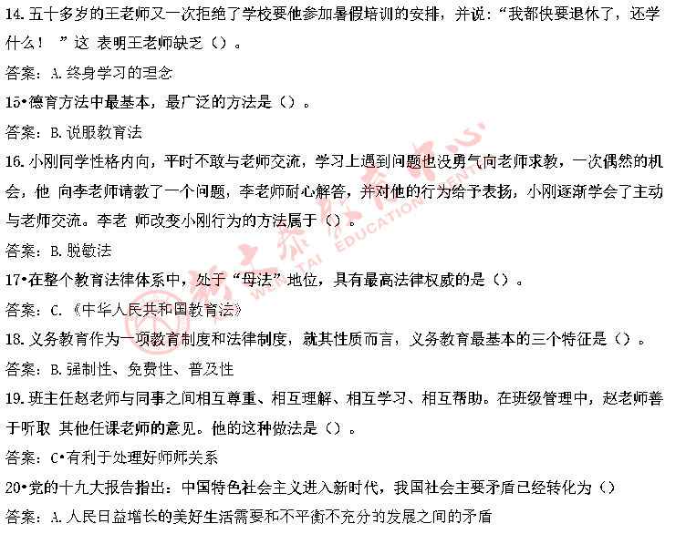2016年贵阳市教师招考【教育综合知识】笔试真题及答案【点击查看】