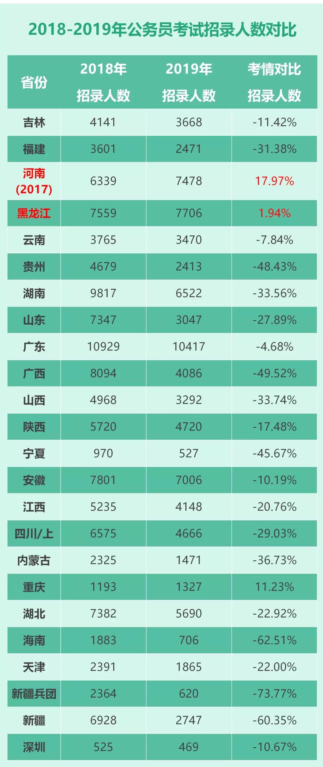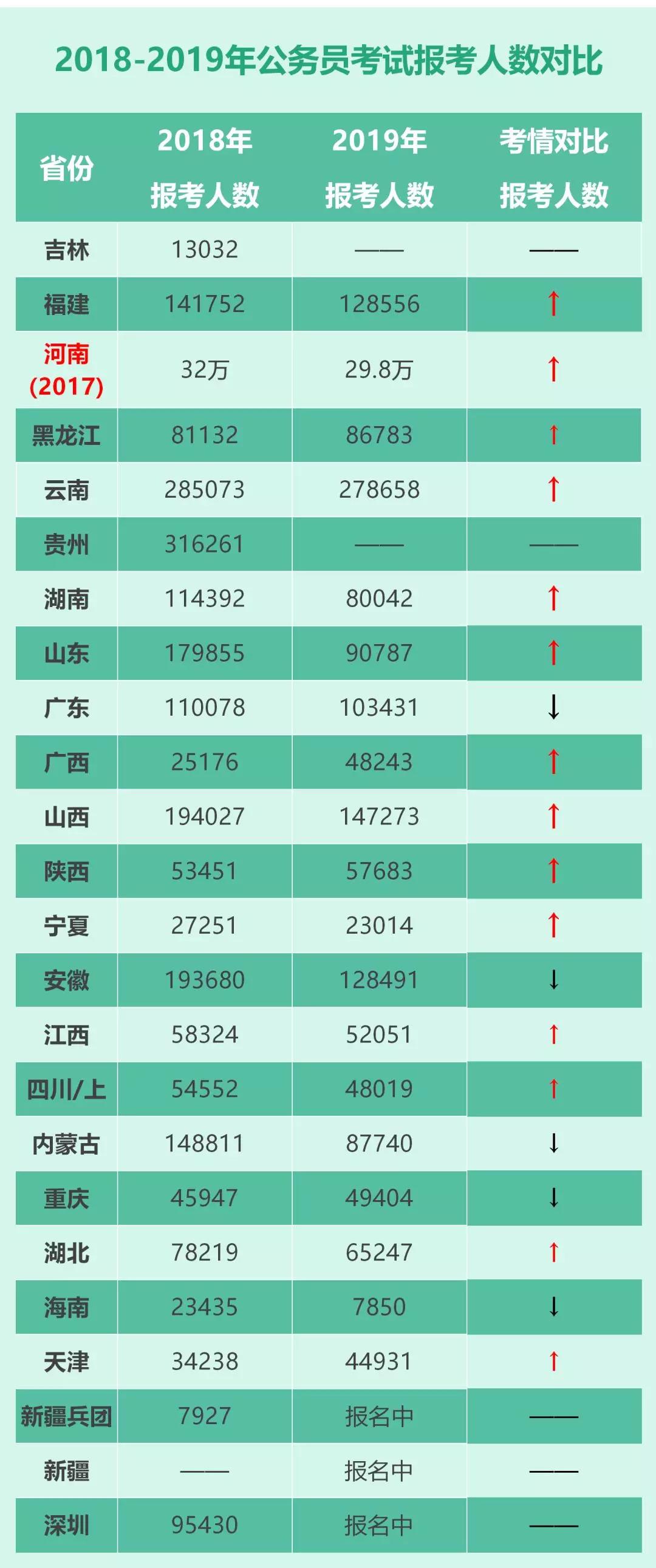 仅河南(2018年一年未招考)、黑龙江有所上升