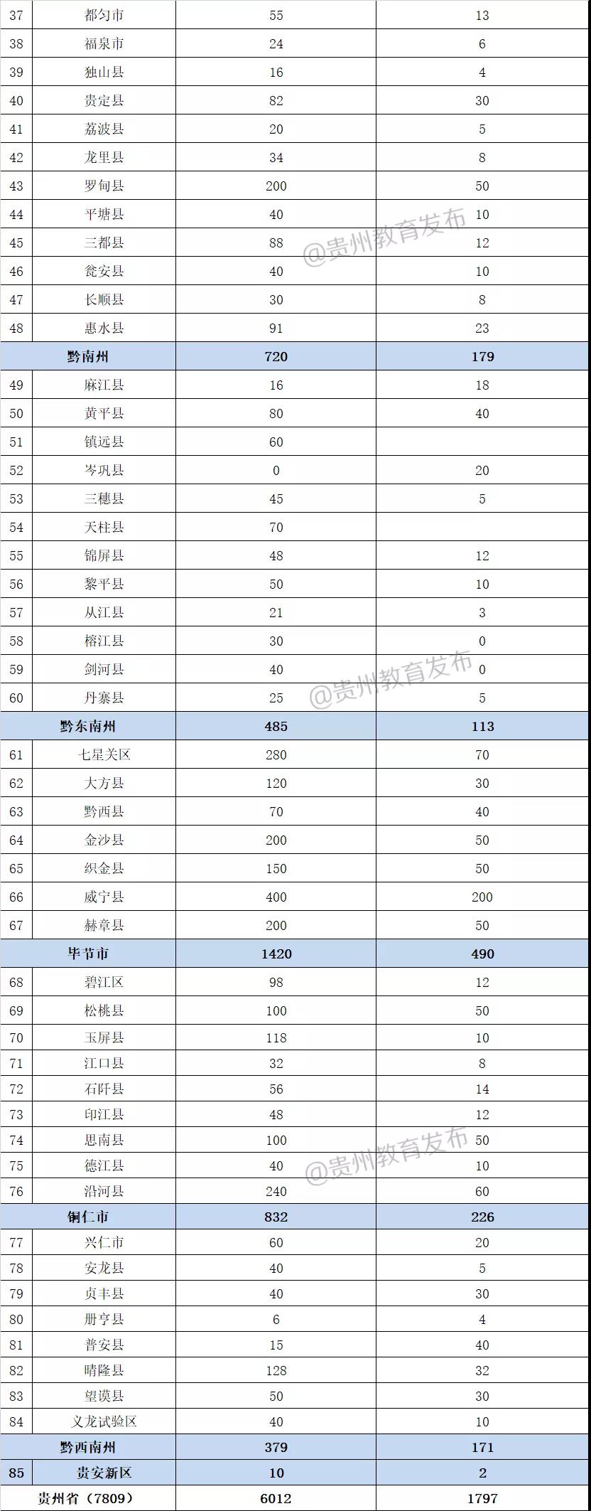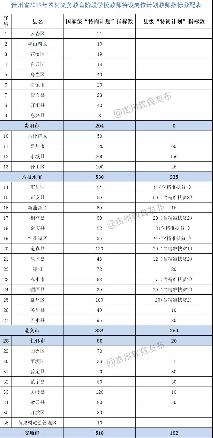 2019年贵州特岗教师招考各区县招考指标【点击查看、7809人】
