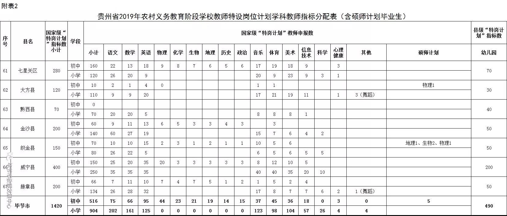 2.毕节市2019年农村义务教育阶段学校教师特设