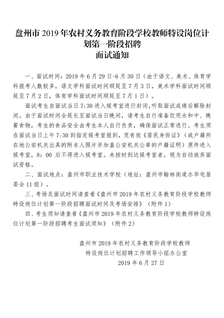 盘州市2019年农村义务教育阶段学校教师特设岗位计划第一阶段招聘考生面试须知