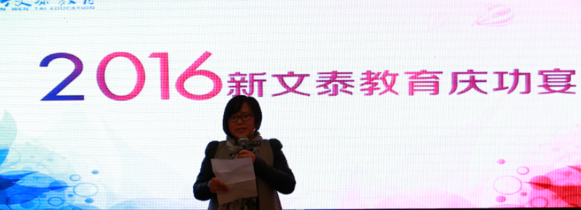 主持人在欢快的音乐之中宣布晚宴开始,薛静老师作为校职工代表发言,她感谢大家对新文泰的信任和支持并希望大家多到新文泰走动走动,见证我校的成长和铭记彼此的同窗之谊、师生之情。也衷心祝福各位单身的青年才俊,在工作顺利的同时能成功的步入婚姻殿堂。