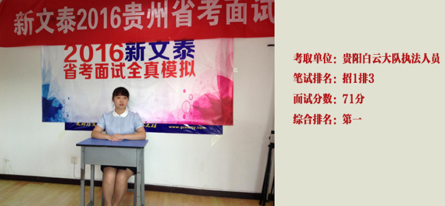 后来的面试培训中,因为第一次参加,心里有更多的疑问与迷茫,再因为自己笔试成绩招一排三,心里难免更有压力。在学习过程中,我很清楚我的问题:头脑不清楚,思路不清晰。经过了第一期的学习,薛老师来验收,作为一名要逆袭的人,表现并不好,当场宣布我被“回锅”了,当时我就特别失落,觉得逆袭难上加难,不过我没有放弃,我觉得如果我努力了,结果没有成功,那我也不后悔。我又一次重新进行学习,这一次我明显感受到有进步,也产生了信心,老师们都尽心尽力帮助所有的学员。在得到成绩的时候,我很幸运的逆袭成功了,在那一刻我感受到付出的努力有了回报。