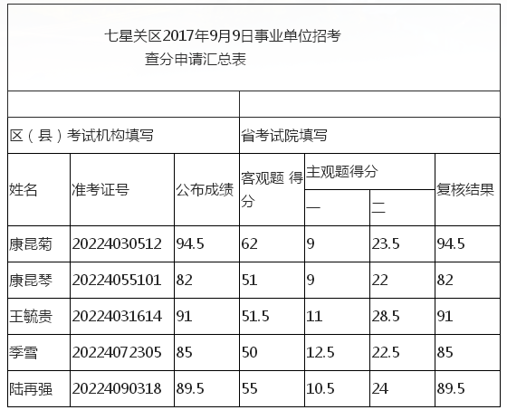 根据《毕节市七星关区2017年第四批面向社会公开招聘事业单位工作人员简章》,现将笔试成绩查分情况通知如下: