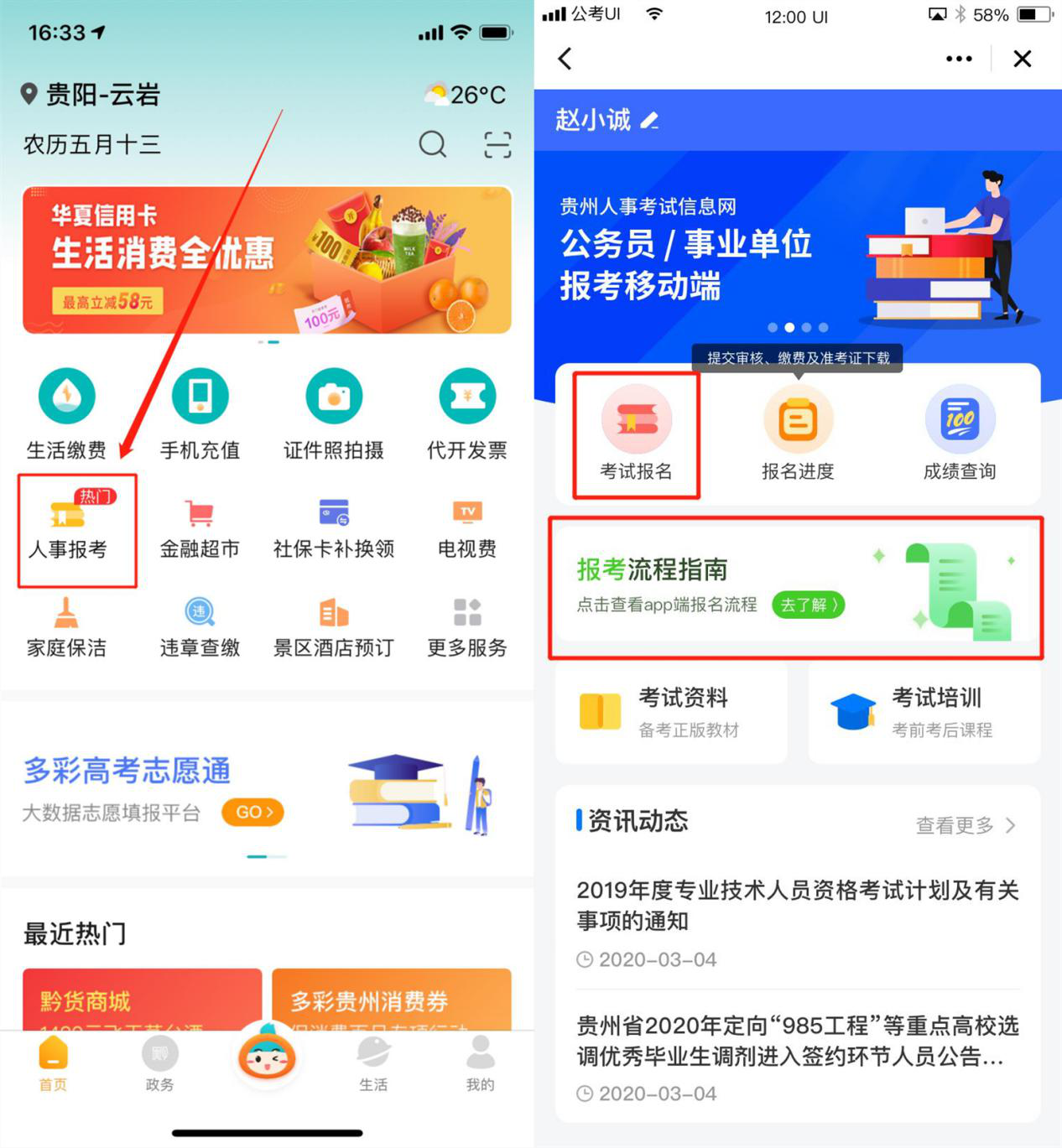 多彩贵州网讯 按照省委、省政府推进审批服务便民化的工作要求,持续推动大数据与服务民生深度融合,根据贵州省人社厅考试院相关部署,依托贵州人事考试信息网,贵州政务服务网移动端唯一门户“云上贵州多彩宝”APP正式上线了“人事考试报考移动端——人事报考”。
