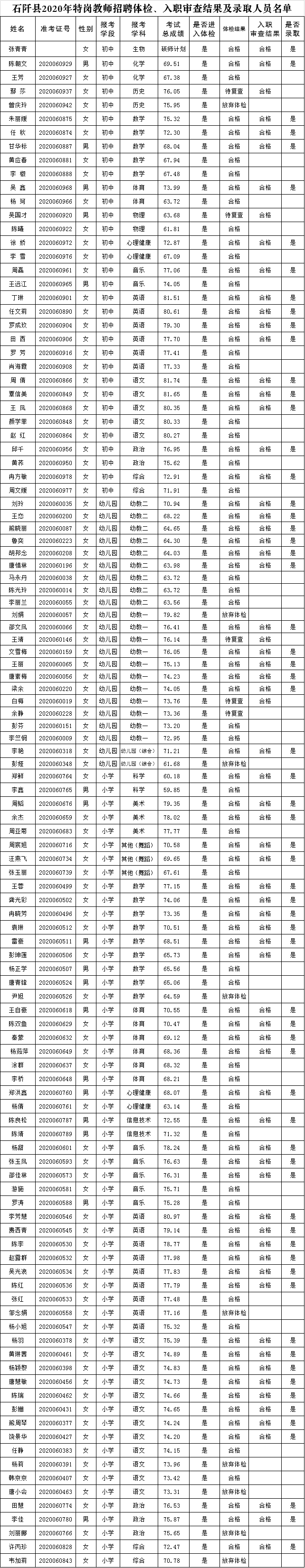 附件:石阡县2020年特岗教师招聘体检、入职审查结果及录取人员名单