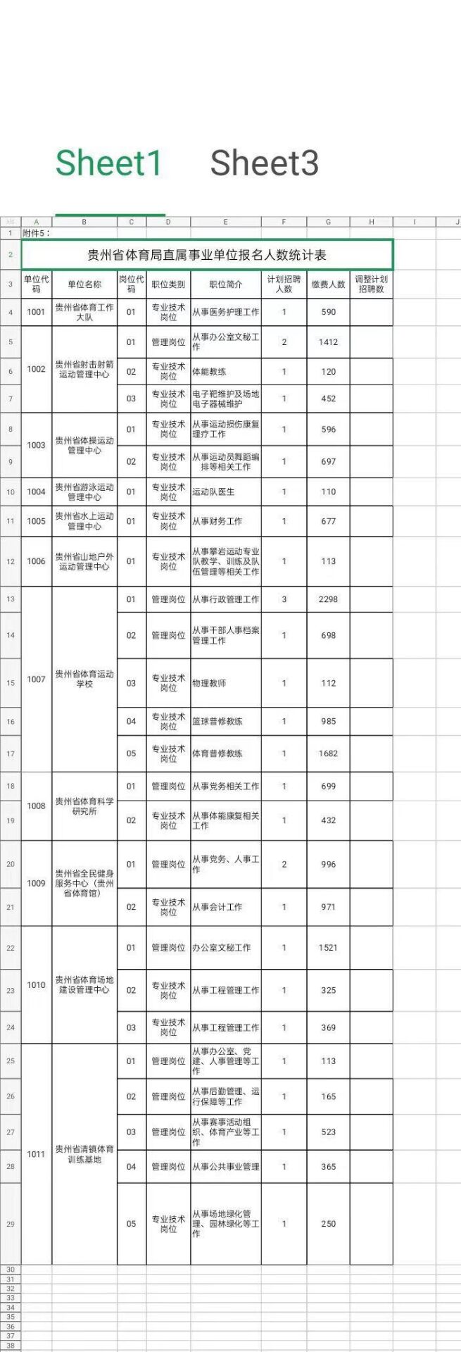 2020贵州省体育局事业单位报名时间11月25日至27日,现报名已结束,正在笔试准考证打印阶段,笔试时间12月13日进行,笔试科目为《公共基础知识》,现有考生分享体育局事业单位报名人数信息,此信息显示报名人数为附件5,现在整理2020贵州省体育局报名人数信息于此,如果引起侵权,请在30天内与我站取得联系进行删除处理。
