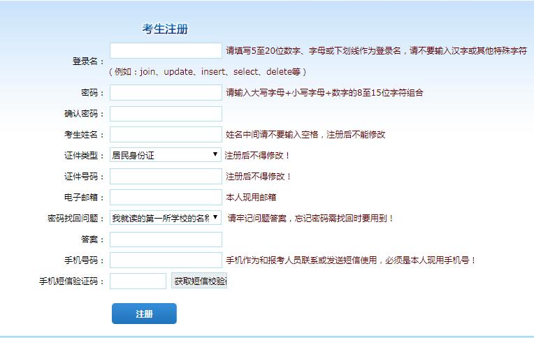 三、进入考生登录页面,需要先注册再登录,点击注册,进入注册页面。