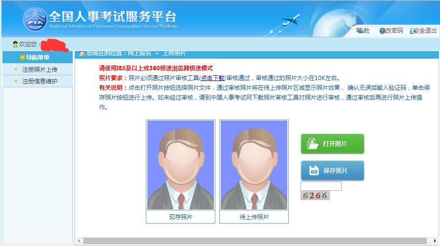 六、进入登录页面后,进入照片上传环节,根据照片要求和提示进行上传报名照片,报名照片需要先进入照片工具审核,再进行上传。
