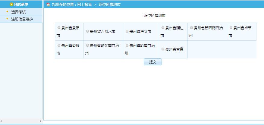 2021年贵州省考报名系统和往年报名不同,虽然报名入口也是贵州人事考试信息网,但是点击进入后报名平台转为全国人事考试平台,贵州所有地市公务员、人民警察报名为同一个入口,选调生为另一个入口,公务员、人民警察所有报考人员只能选择一个地区一个职位进行报考,无法报考多个地区。