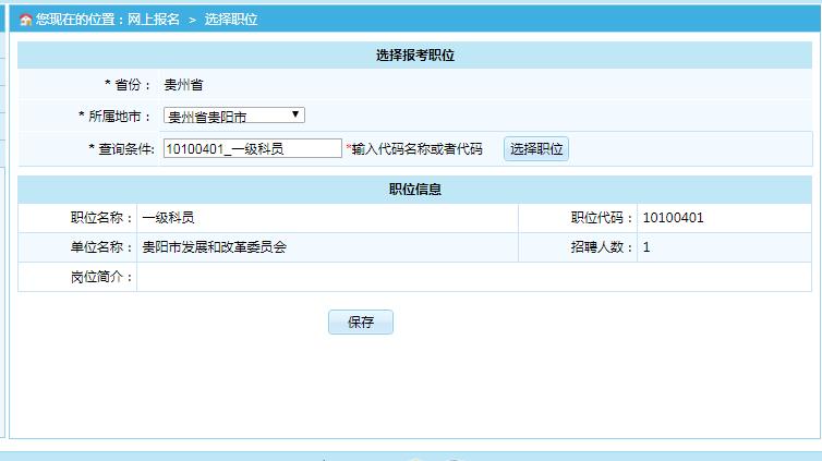 八、填写好报名信息后,点击保存,保存好后,点击选择职位,进入报考职位选择。