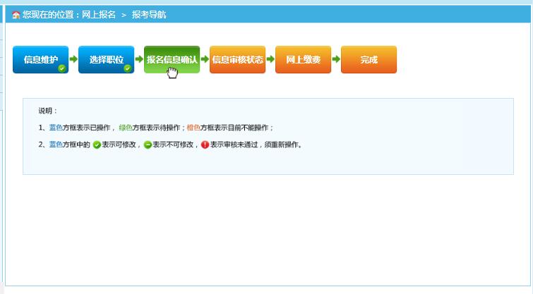 九、职位选择后,点击保存,然后进入报名信息确认,点击确定,进入审核环节。