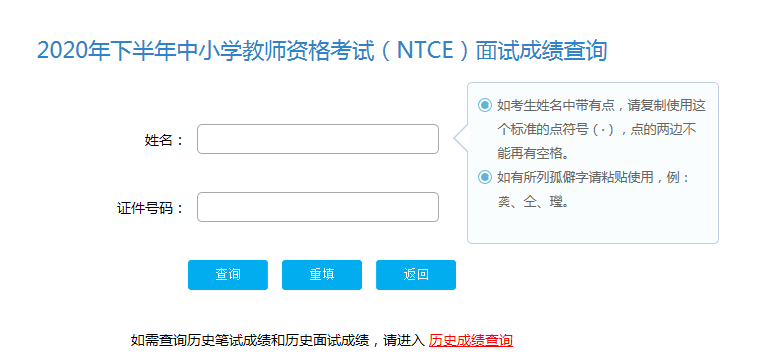 关键字:2020年,下半年中小学教师资格考试,面试成绩,查询入口