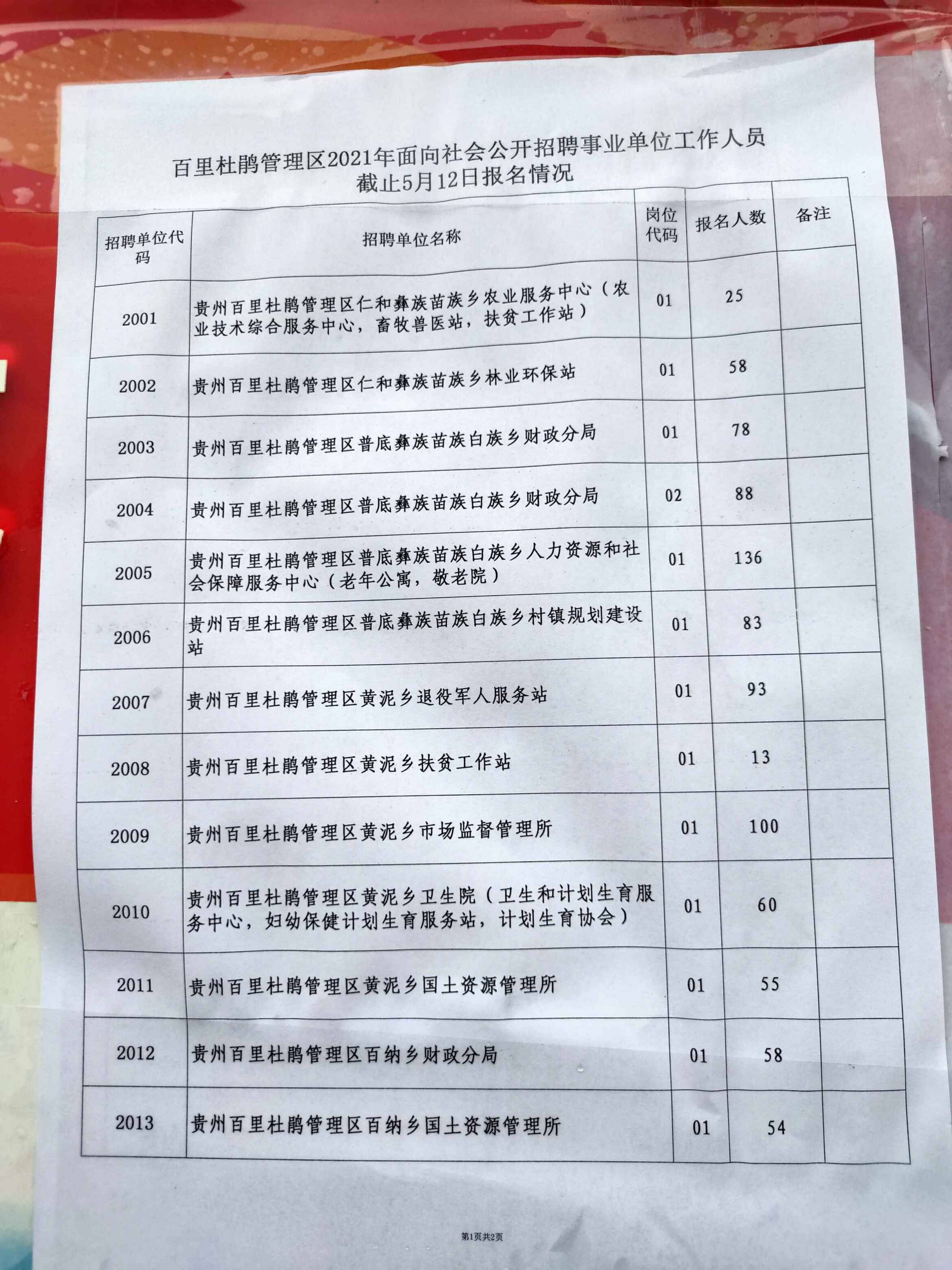 关键字:2021年,百里杜鹃,事业单位,招聘,报名人数