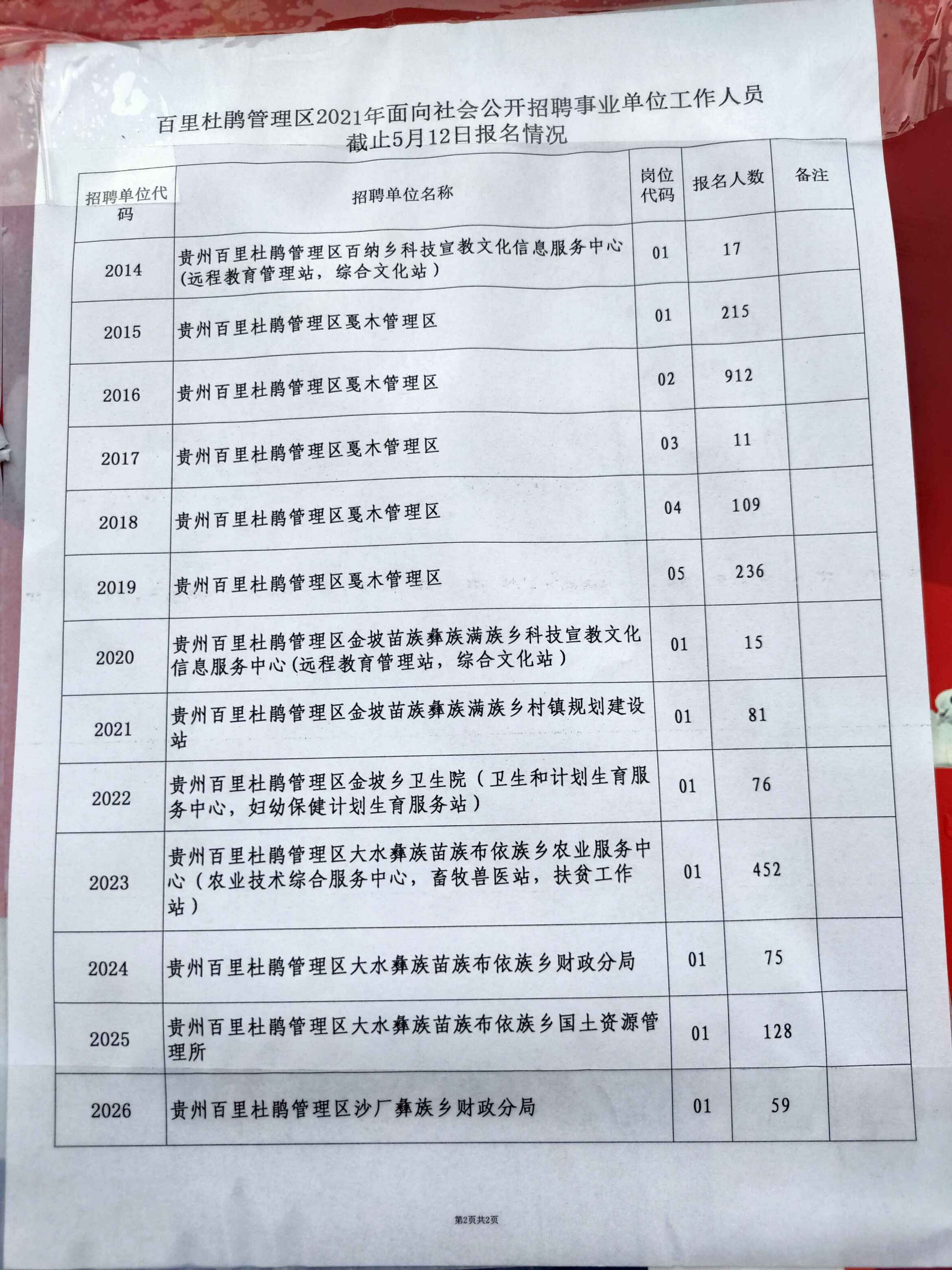 2021年百里杜鹃事业单位招聘报名人数(截止5月12日)