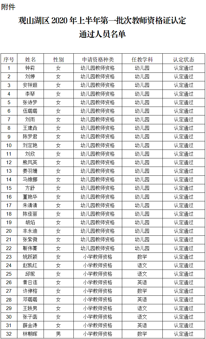 附件:观山湖区2021年上半年第一批次教师资格证认定通过人员名单