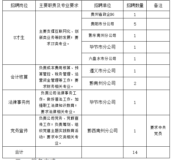 本次招聘用工类型为贵州联通合同制员工,待遇从优,缴纳五险两金。