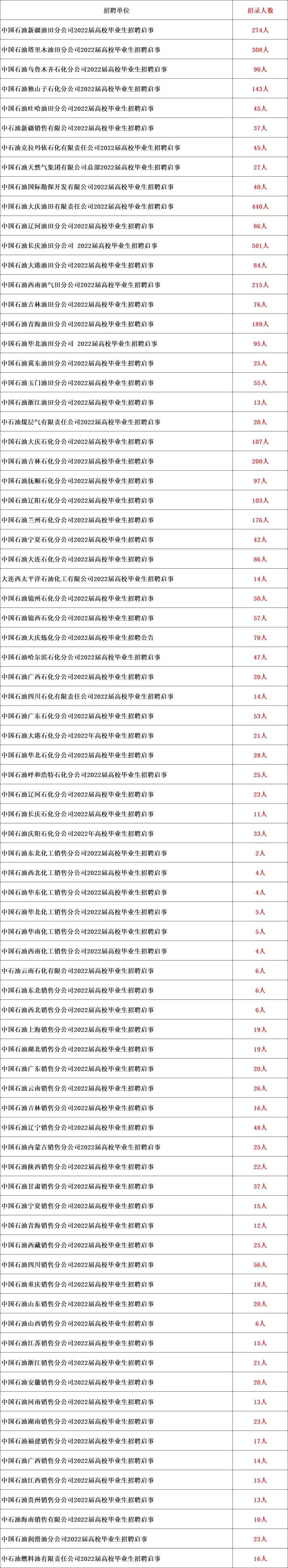本次高校毕业生招聘主要面向2022届高校毕业生,以及回国(境)后初次就业并经国家教育部认证学历学位、具有派遣资格的境外留学生;未落实工作单位,档案、组织关系仍保留在原毕业院校的2021届毕业生也可报名。要求品行端正,遵纪守法,热爱石油事业,认同中国石油企业文化和价值观;身心健康,能适应岗位工作;所学专业符合招聘岗位要求,满足招聘单位业务发展需要;学习成绩优良,取得相应的学位学历证书点击获取职位表。