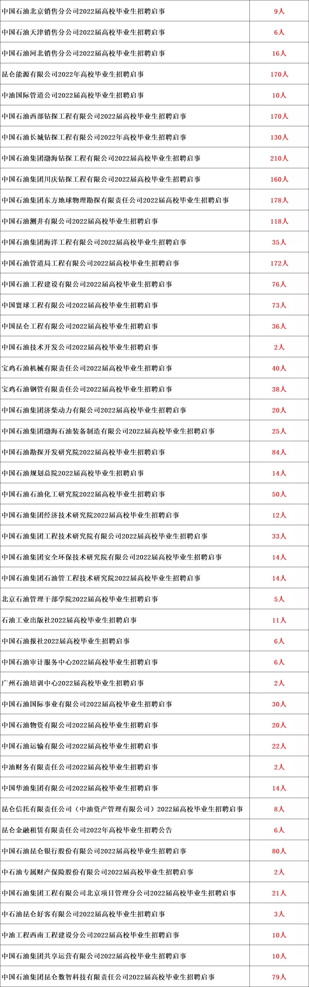 1.中国石油各招聘单位的高校毕业生招聘信息均通过招聘平台发布,无其他报名方式。