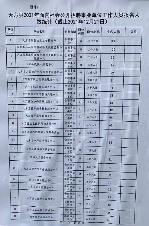 关键字:大方县,2021年,招聘,事业单位,12月21日,报名人数