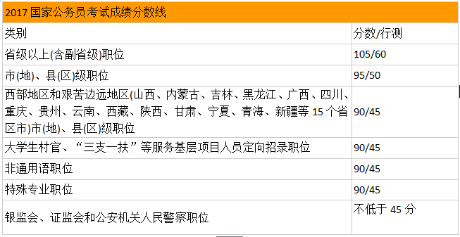 2018国家公务员考试成绩分数线暂未公布,请广大考生参考2017国家公务员考试成绩分数线:
