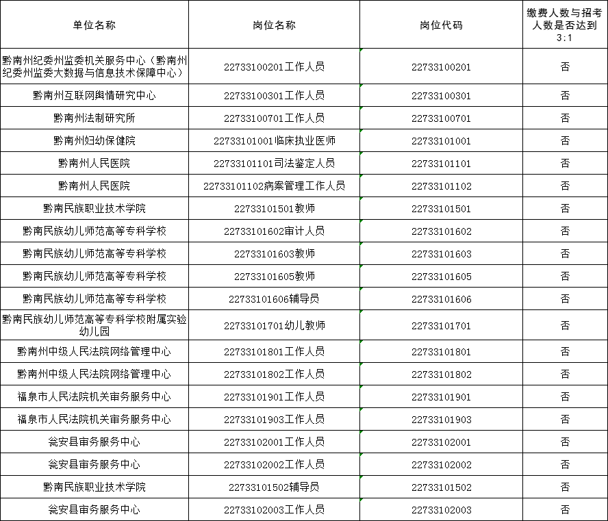 2022上半年贵州黔南州直事业单位招聘缴费人数不足3:1岗位(截止4月21日17:00时)