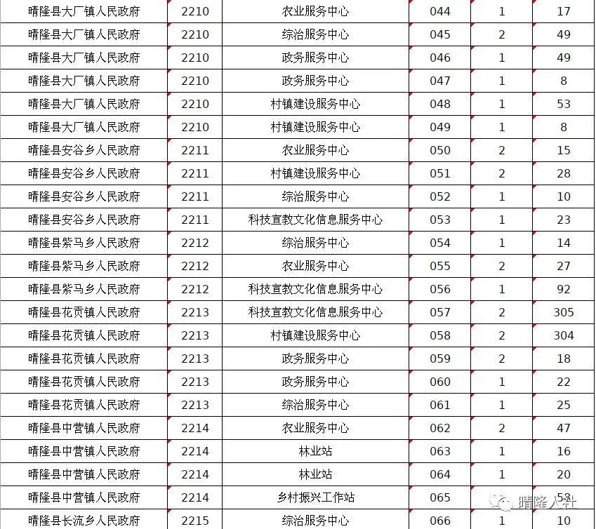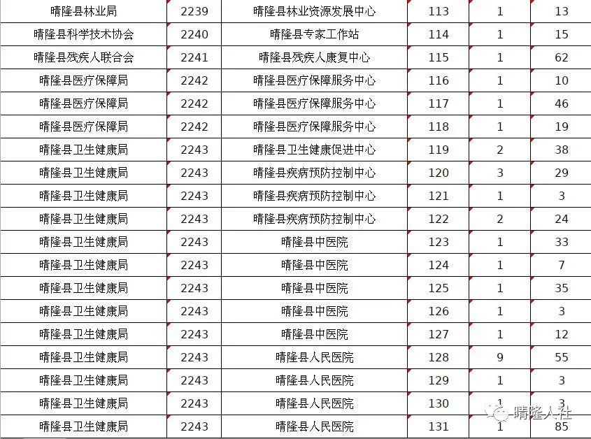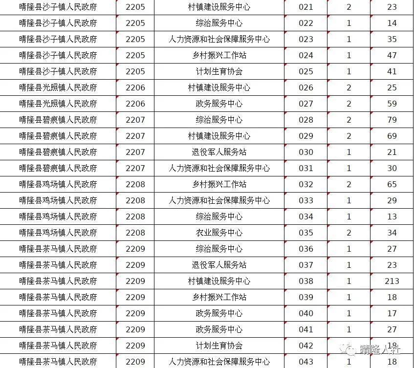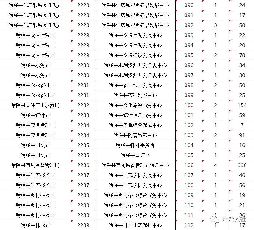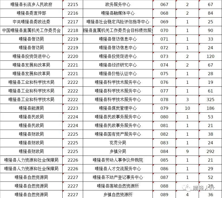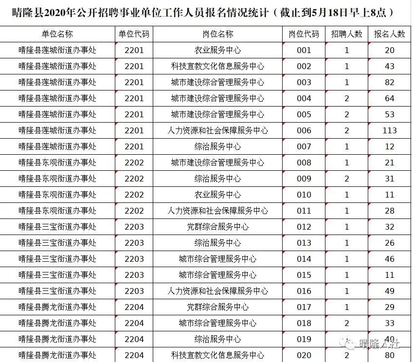 晴隆县2022年计划面向社会公开招聘事业单位工作人员200名。其中:县直部门85名(含派出机构15名)、卫生系统25名、乡镇(街道)事业单位90名。截止到5月18日早上8点,共有6441名考生完成网上报名。其中,038、057、058、078等岗位报名人数较多,竞争激烈,报考比例均超过100:1。在此,温馨提示广大考生,网上报名时间为:2022年5月16日9:00至5月18日17:00;网上缴费时间为:2022年5月16日9:00至5月20日18:00。报名成功的考生请及时缴费,以免错过缴费时间。