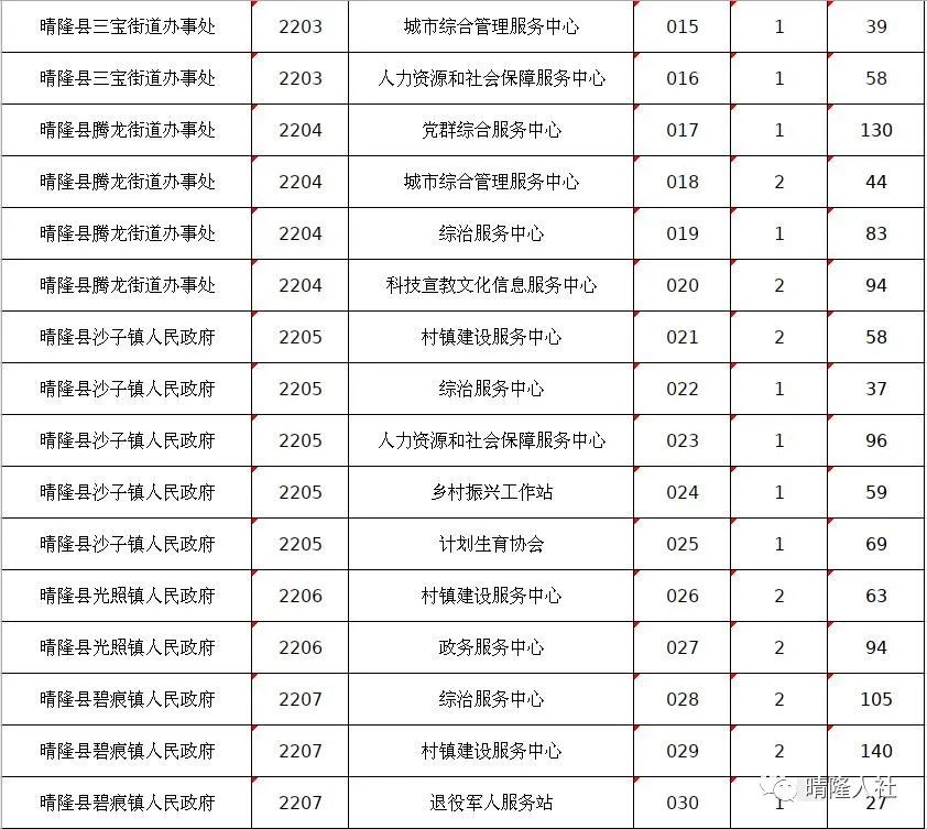晴隆县2022年公开招聘事业单位工作人员,经过网上报名、网上资格初审、报名确认及缴费等环节,共有9748名考生成功报名并缴费。报名人数较多、竞争较为激烈的岗位有:茶马镇人民政府村镇建设服务中心038岗位,比例达299:1;晴隆县东观街道办事处人力资源和社会保障服务中心011岗位,比例达230:1。报名人数较少的岗位有121、124、126、129、130岗位,报名比例均未达10:1。