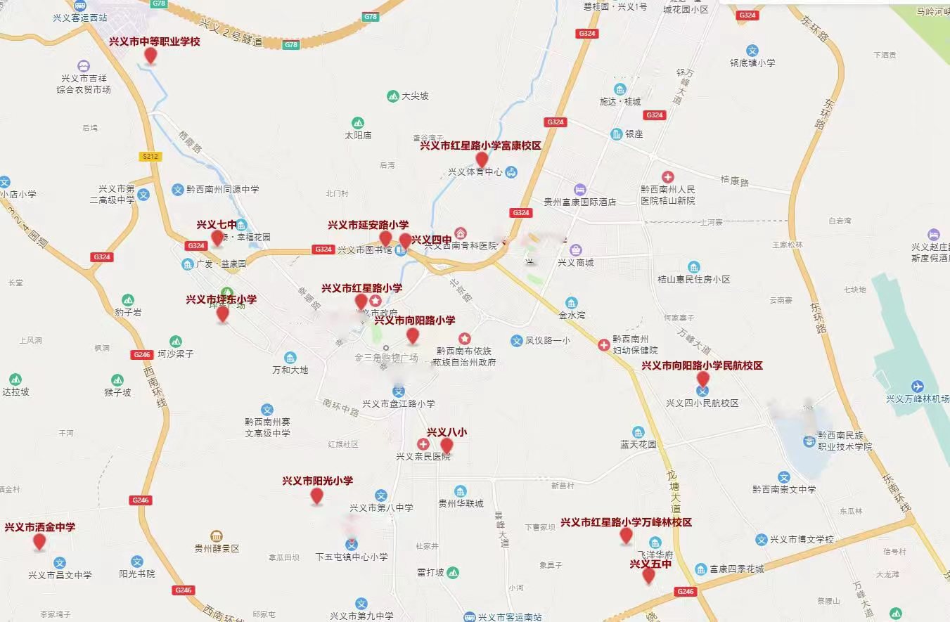 兴义市2022年事业单位新增人员公开招聘笔试考点地图
