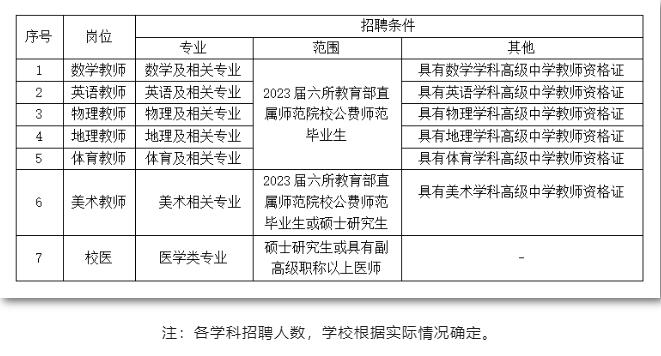 为进一步优化学校教师队伍,提高教师队伍整体素质,促进教师队伍的均衡发展,我校2022年将本着公正公开、宁缺毋滥、择优录取的原则,面向2023届六所教育部直属师范院校公费师范生、硕士研究生及副高级以上职称人员招聘教师和校医。现将本次招聘报名相关事宜公告如下: