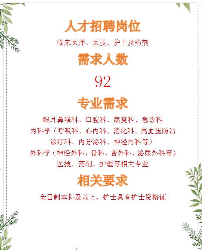 为适应医院发展的要求,结合医院人才队伍建设规划和学科发展需要,现面向社会公开招聘专业技术人员92人,期待您的加入。