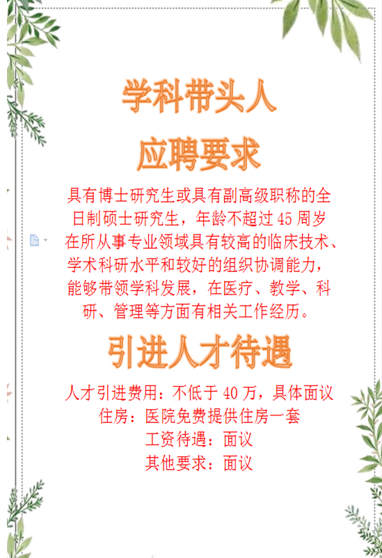 2、硕士研究生及以上、规培完成并取得相应证件的、中级职称及以上的待遇面议。