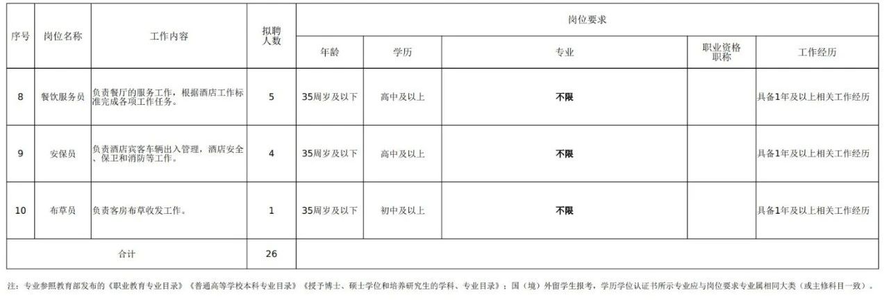 因业务发展需要,经研究,公司决定面向社会公开招聘26人。现就有关事宜公告如下。