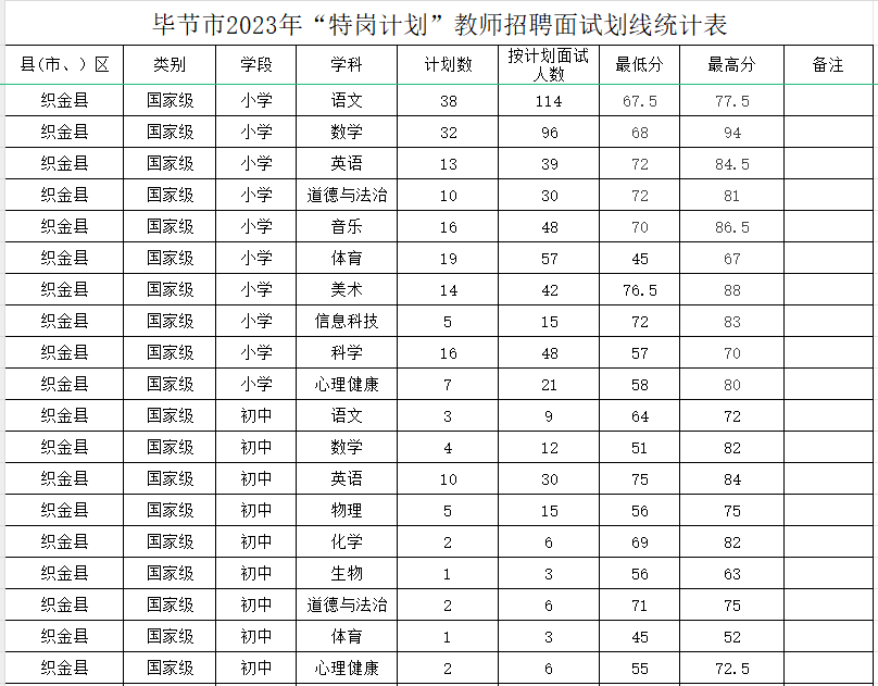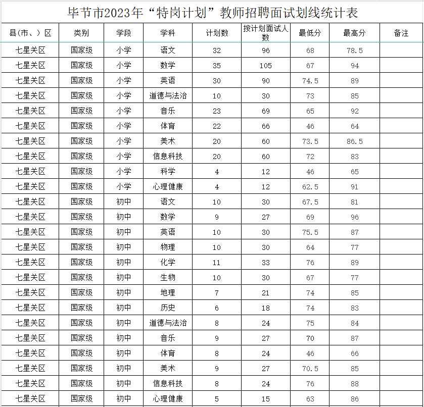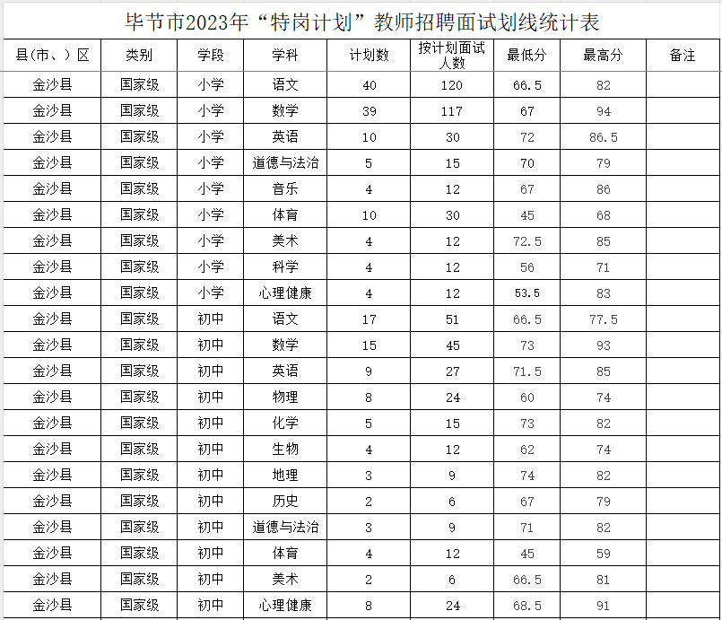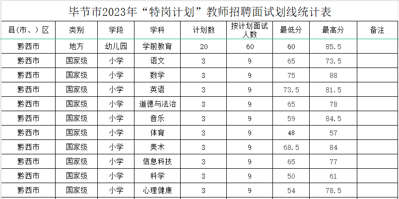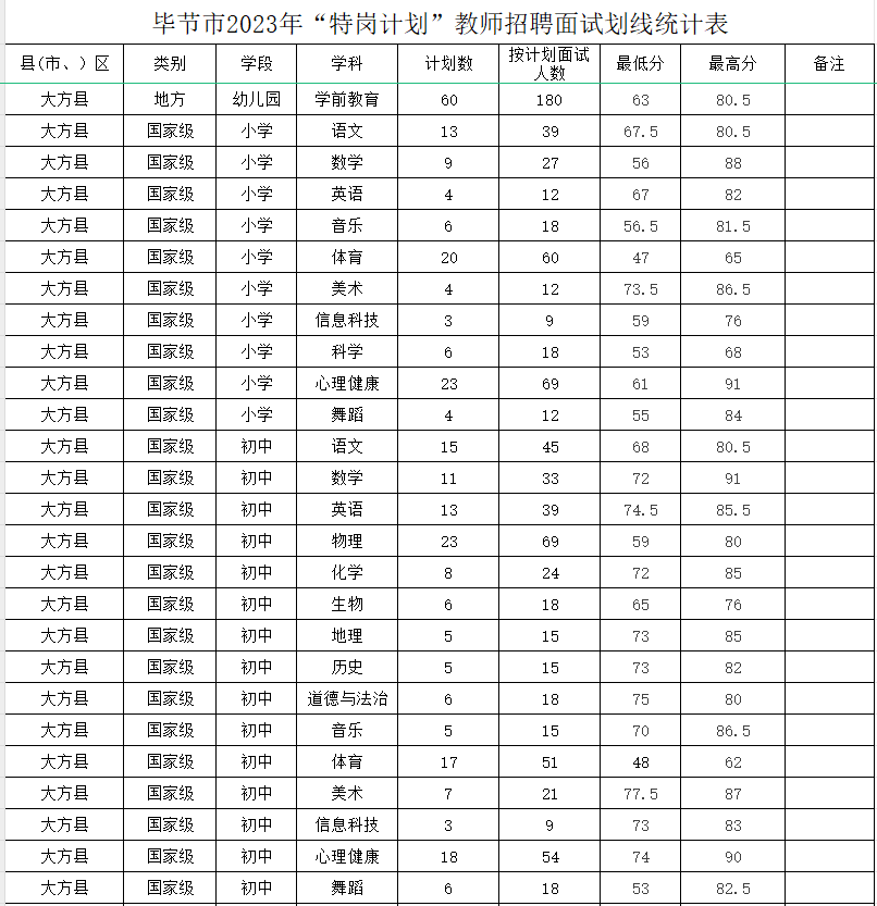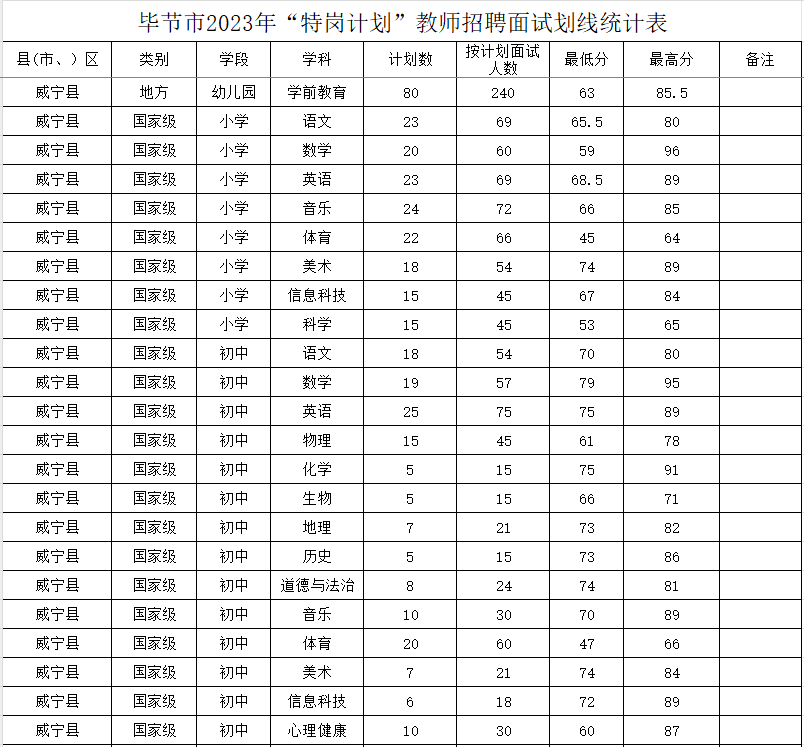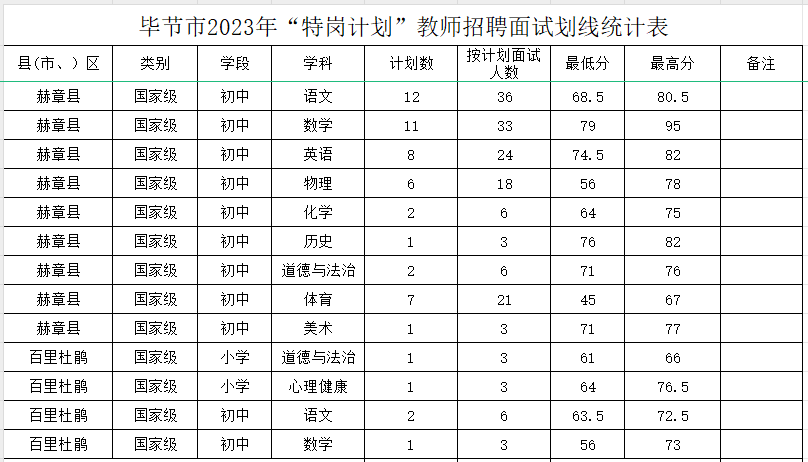 附件:毕节市2023年“特岗计划”教师招聘面试划线统计表