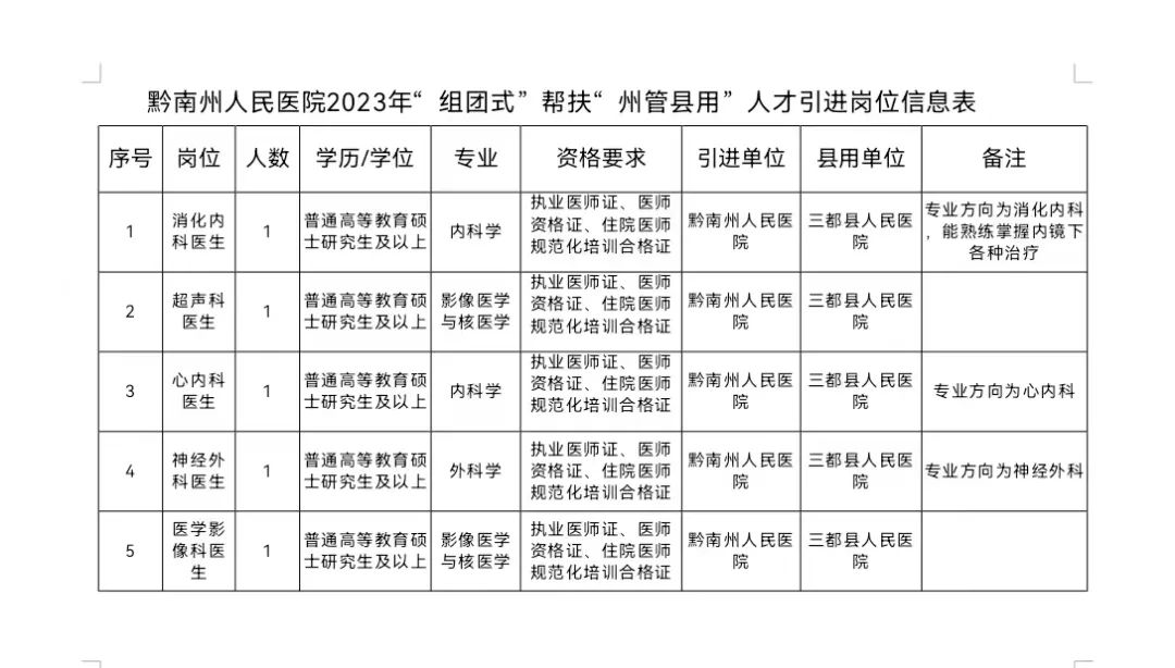 原标题:黔南州人民医院2023年“组团式”帮扶“州管县用”人才引进公告
