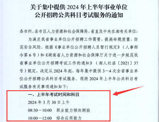 通知原文:关于集中提供2024年上半年事业单位公开招聘公共科目考试服务的通知