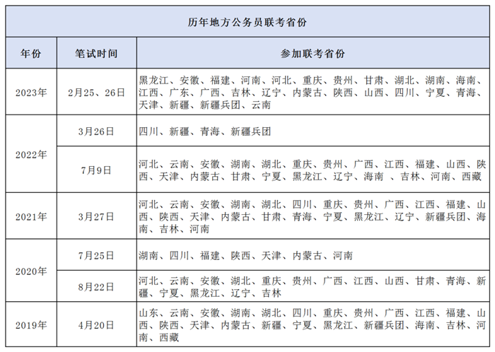 以下为历年参加多省联考的省份,可供参考: