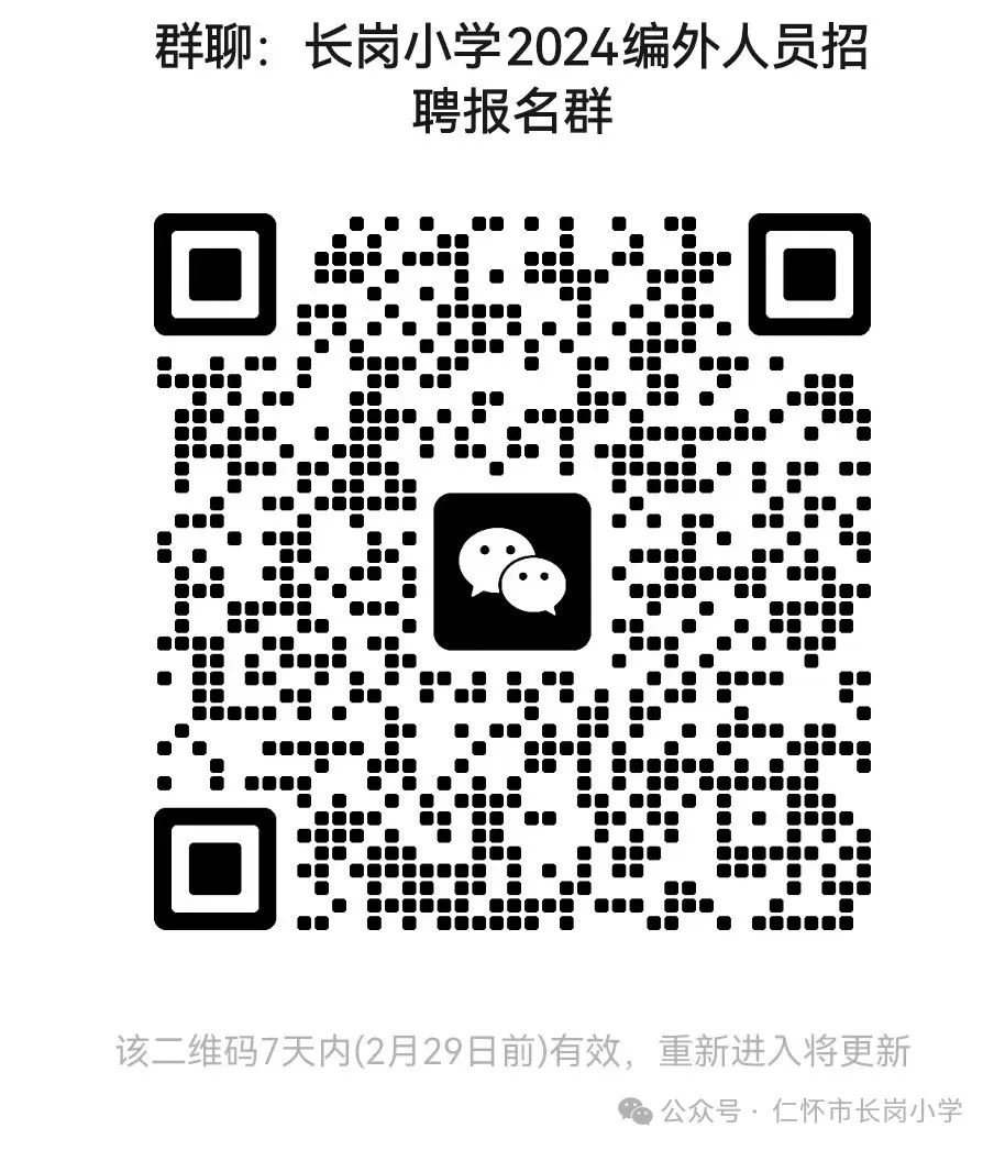 (一)报名:应聘者扫描二维码加入长岗小学2024年编外人员招聘报名群。报名截止时间:2024年2月24日早上9:00。