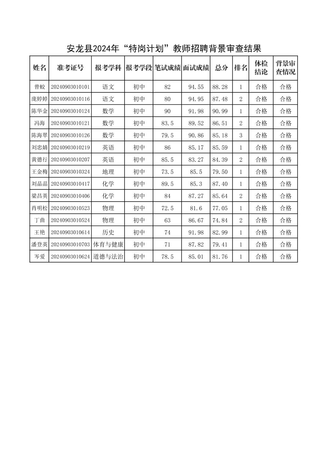 附件:安龙县2024年“特岗计划”教师招聘入职审查结果