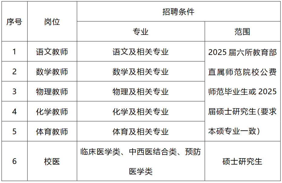 1.各学科教师招聘对象须在毕业前取得相应学科高级中学教师资格证;