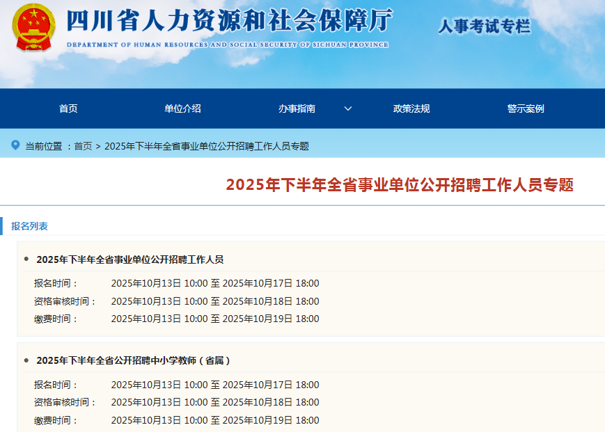 2025年四川省下半年全省事业单位公开招聘工作人员专题【点击查看】