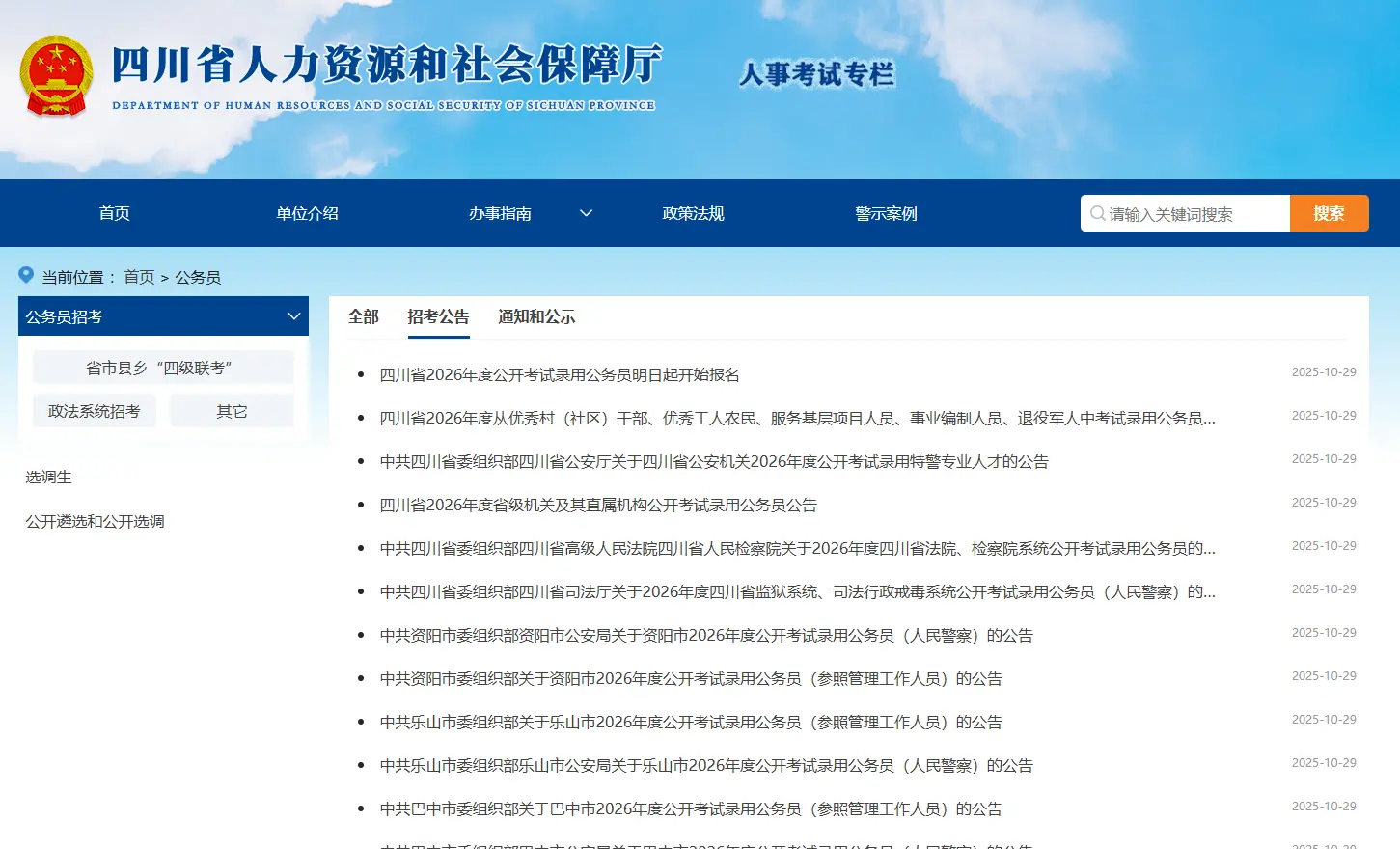 2026年四川省考公告已发布