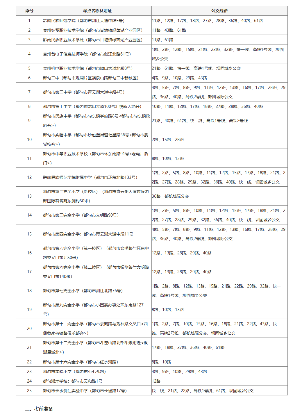考点及公交车线路分布情况如下: