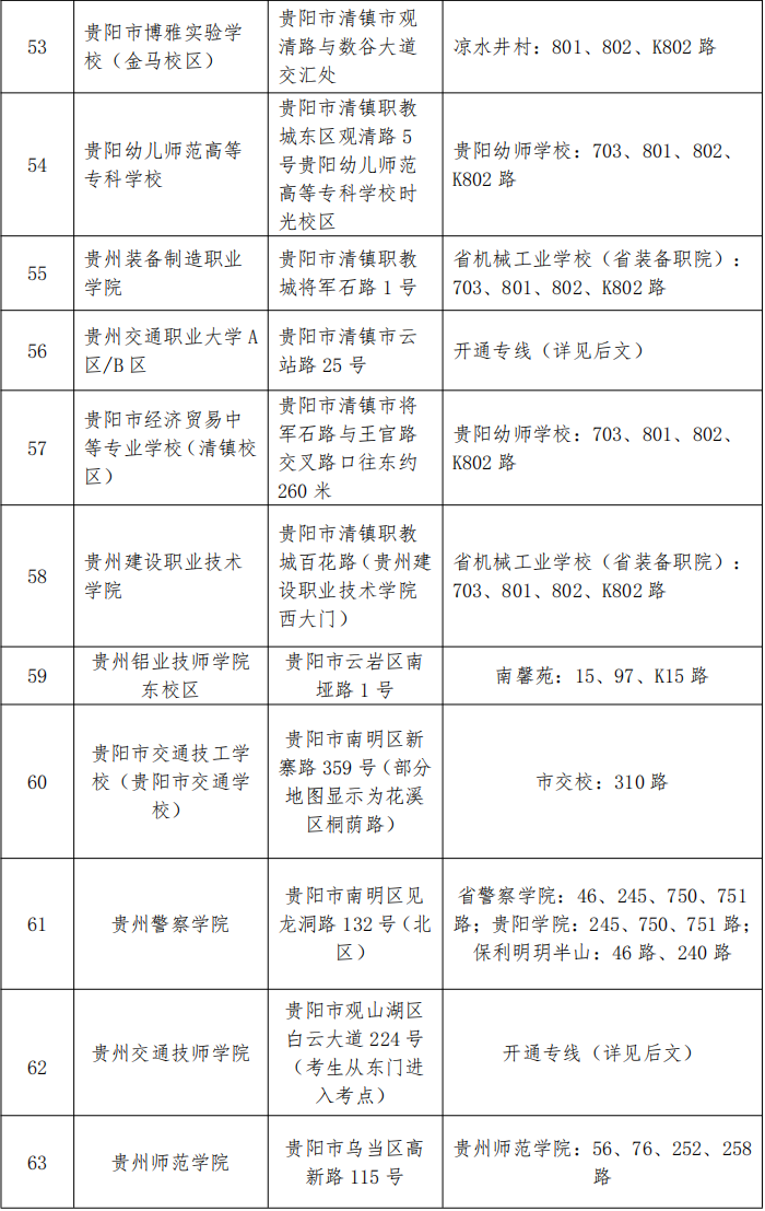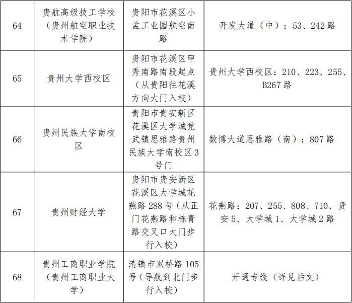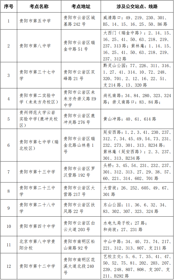 公务员省直考区、贵阳考区考点公交线路及增开