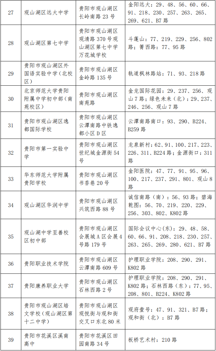 五、贵阳市南明区李端棻中学、贵阳市第九中学直达专线